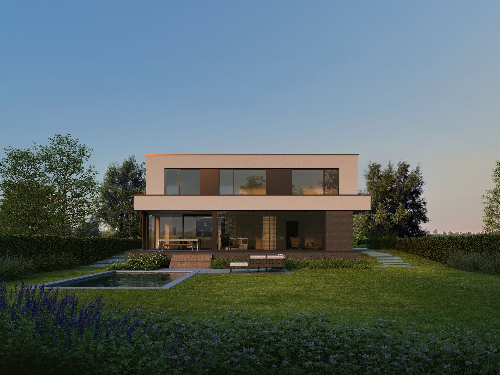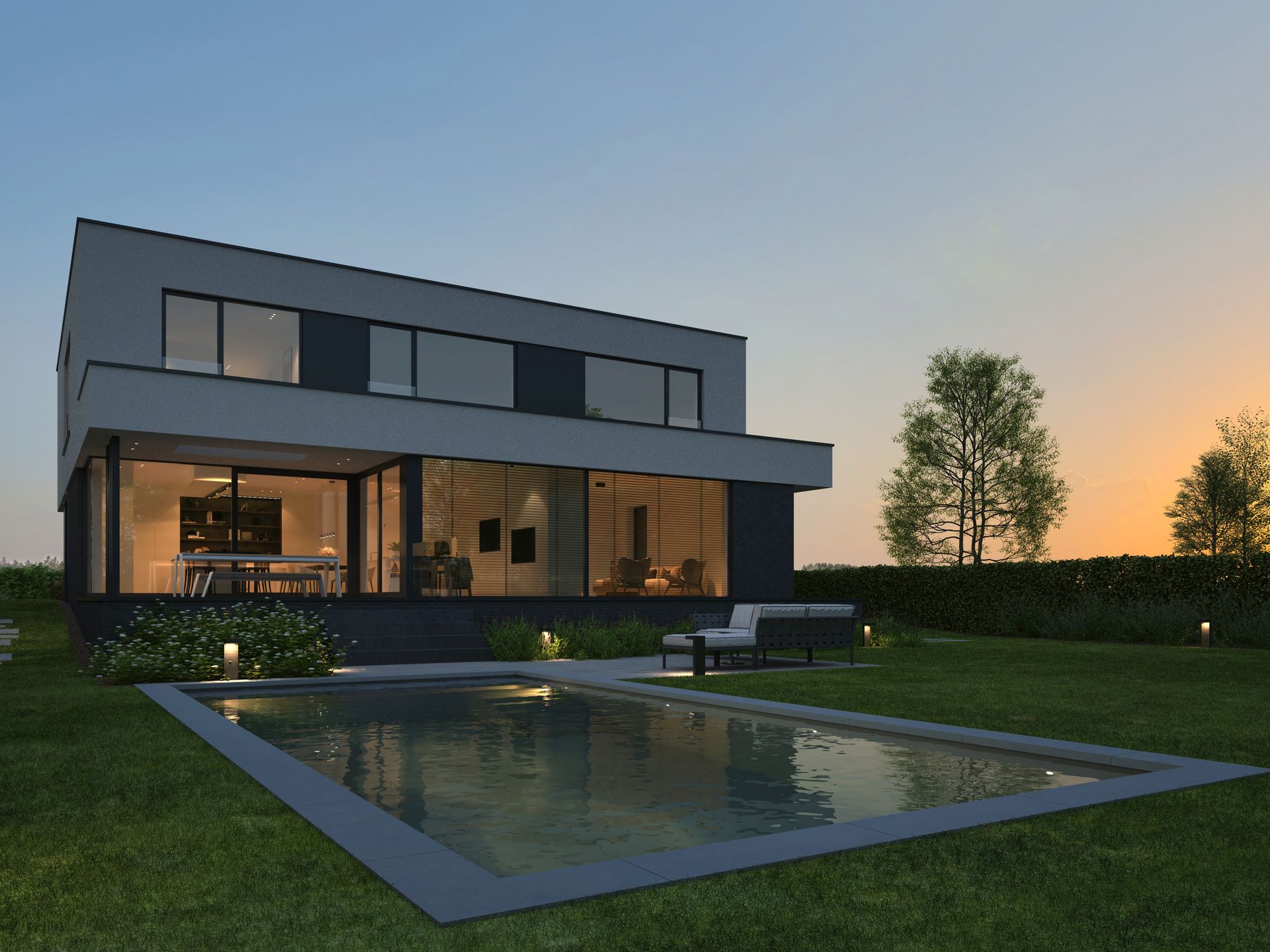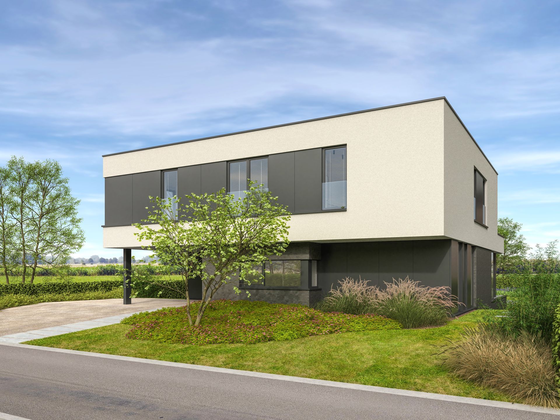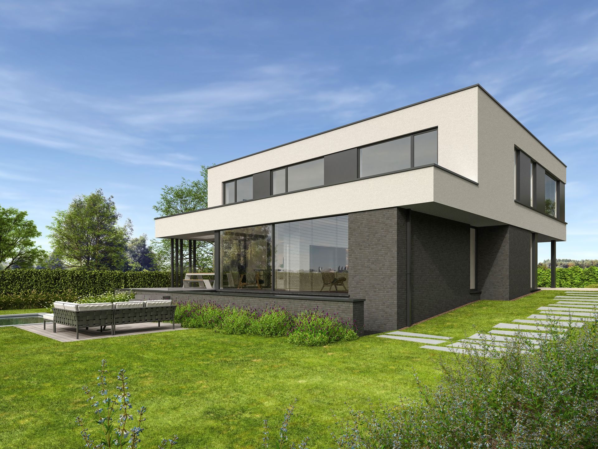 Deze moderne, energiezuinige BEN-woning in Tielt-Winge met strakke belijning werd uitgevoerd in zwarte Wasserstrich steen van Nelissen in combinatie met witte crepi en zwarte aluminium ramen en panelen. De achtergevel is open en lichtrijk en geeft een heerlijk zicht op de zuid-gerichte tuin. De nieuwbouw, gebouwd op een hellend terrein, werd volledig onderkelderd. Deze kelder werd geïsoleerd en doet dienst als polyvalente ruimte.